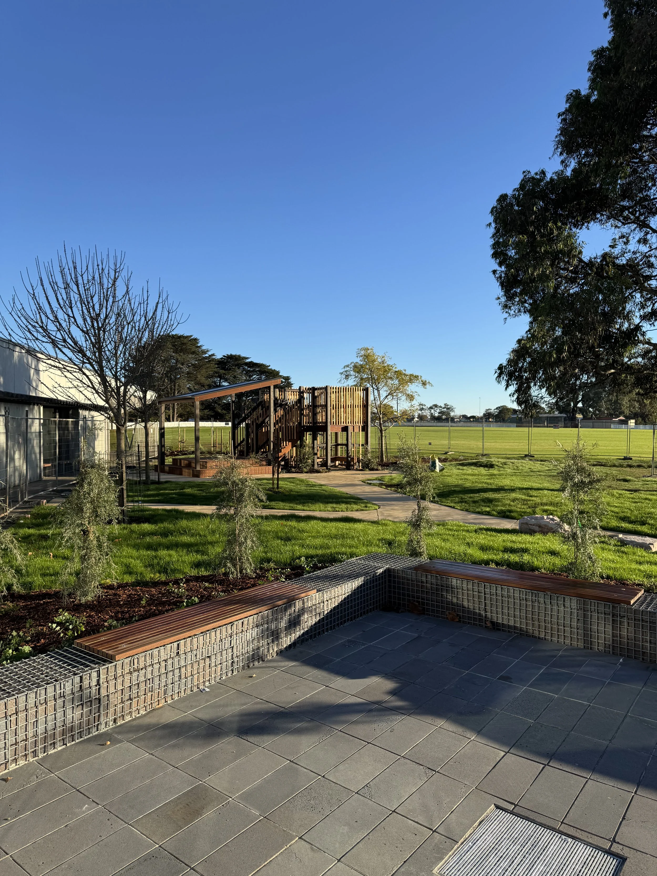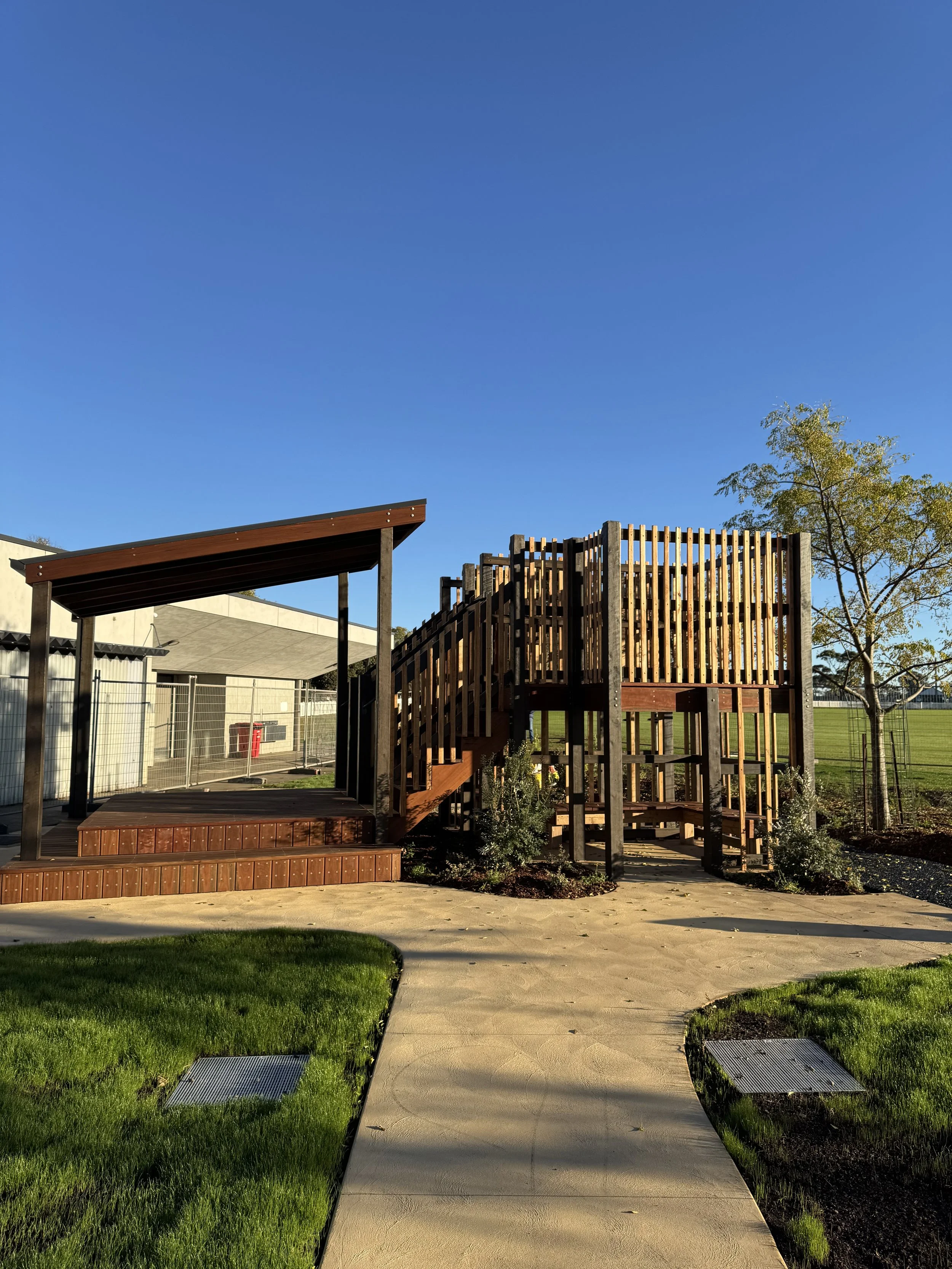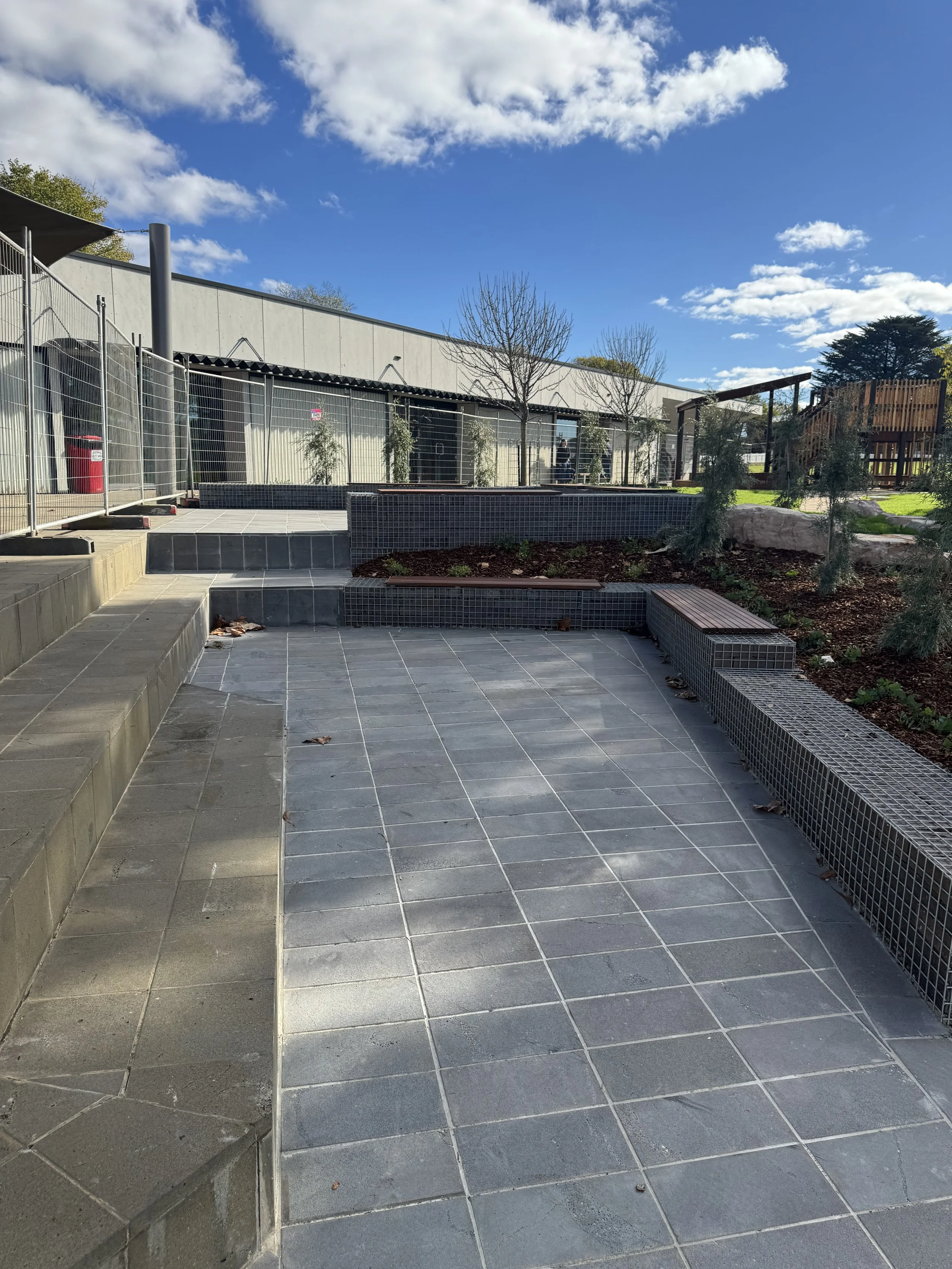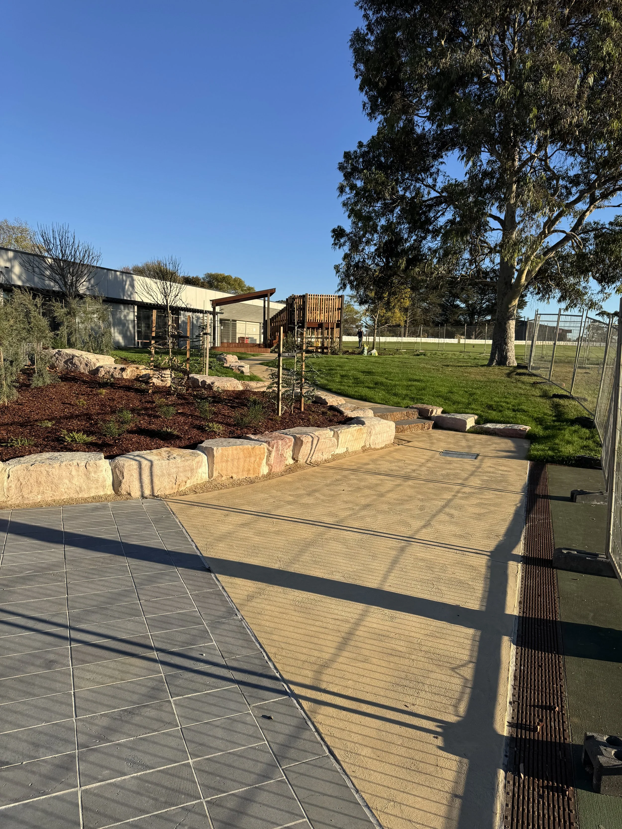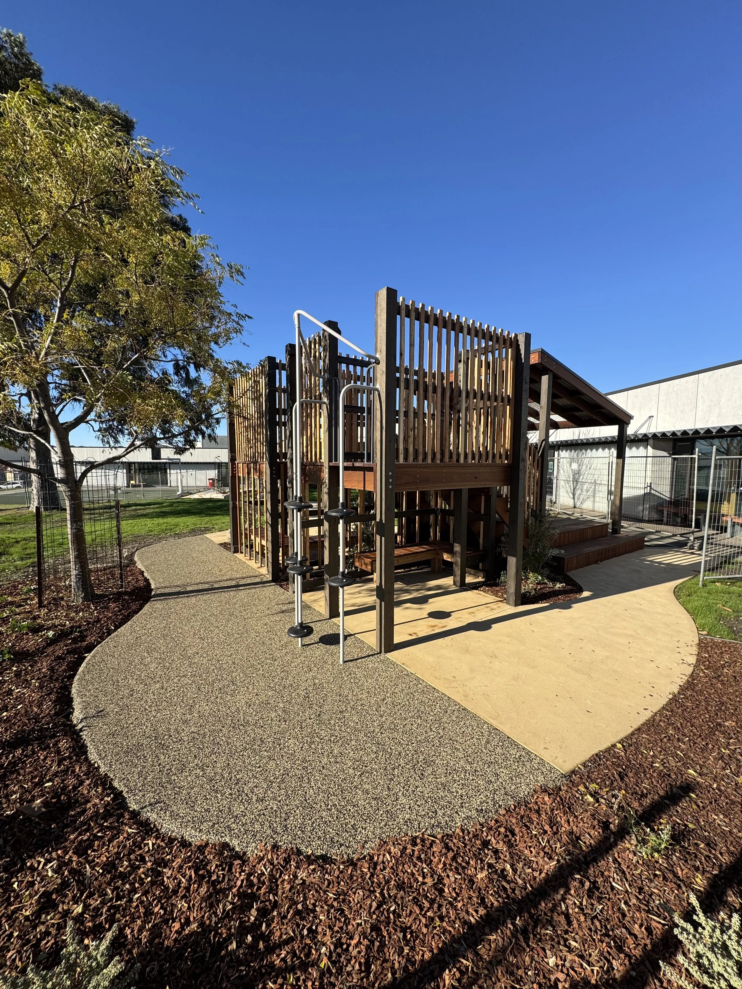 Designed by Jeavons Landscape Architects, Full Tilt Landscapes Constructed this new Inclusive Sensory Area over the course of an 8 week Construction Program. Consisting of many different Pavements types, Sensory Gardens and an All Inclusive Timber Playground Structure.